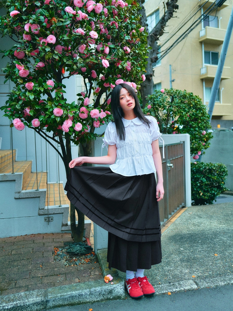 DOUBLE TAPE LAYERD LONG PLEATS SKIRT_BLACK 복제