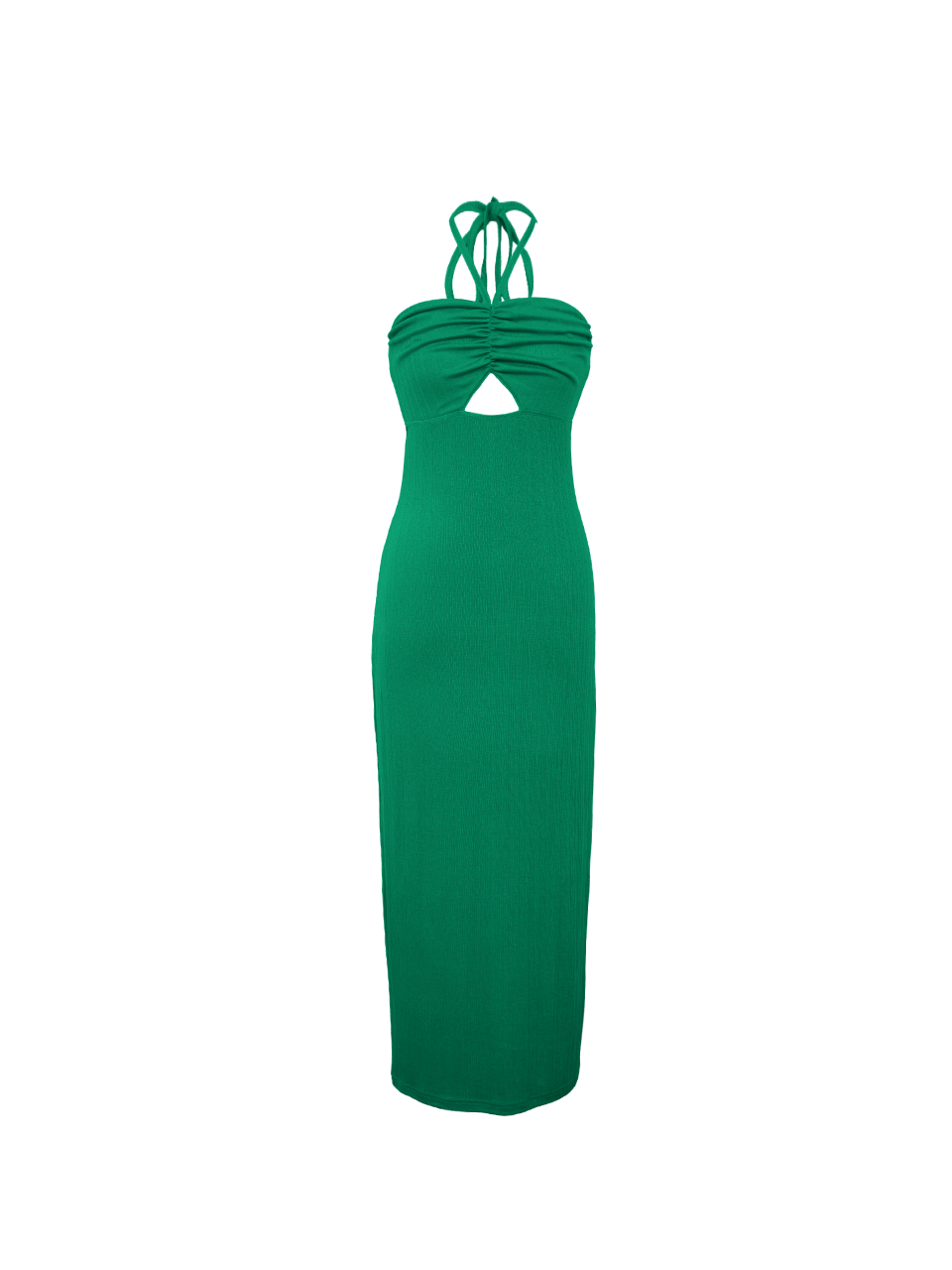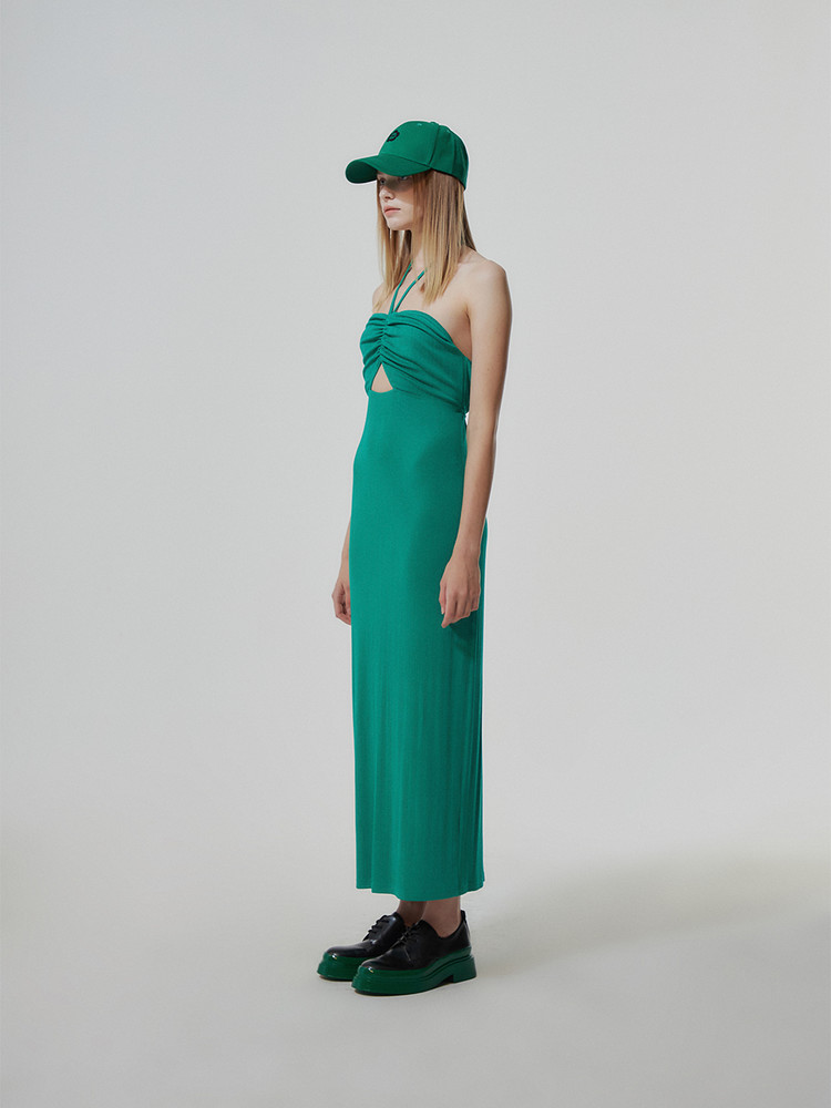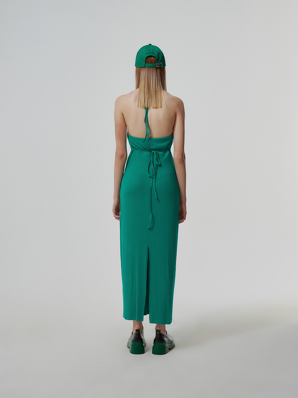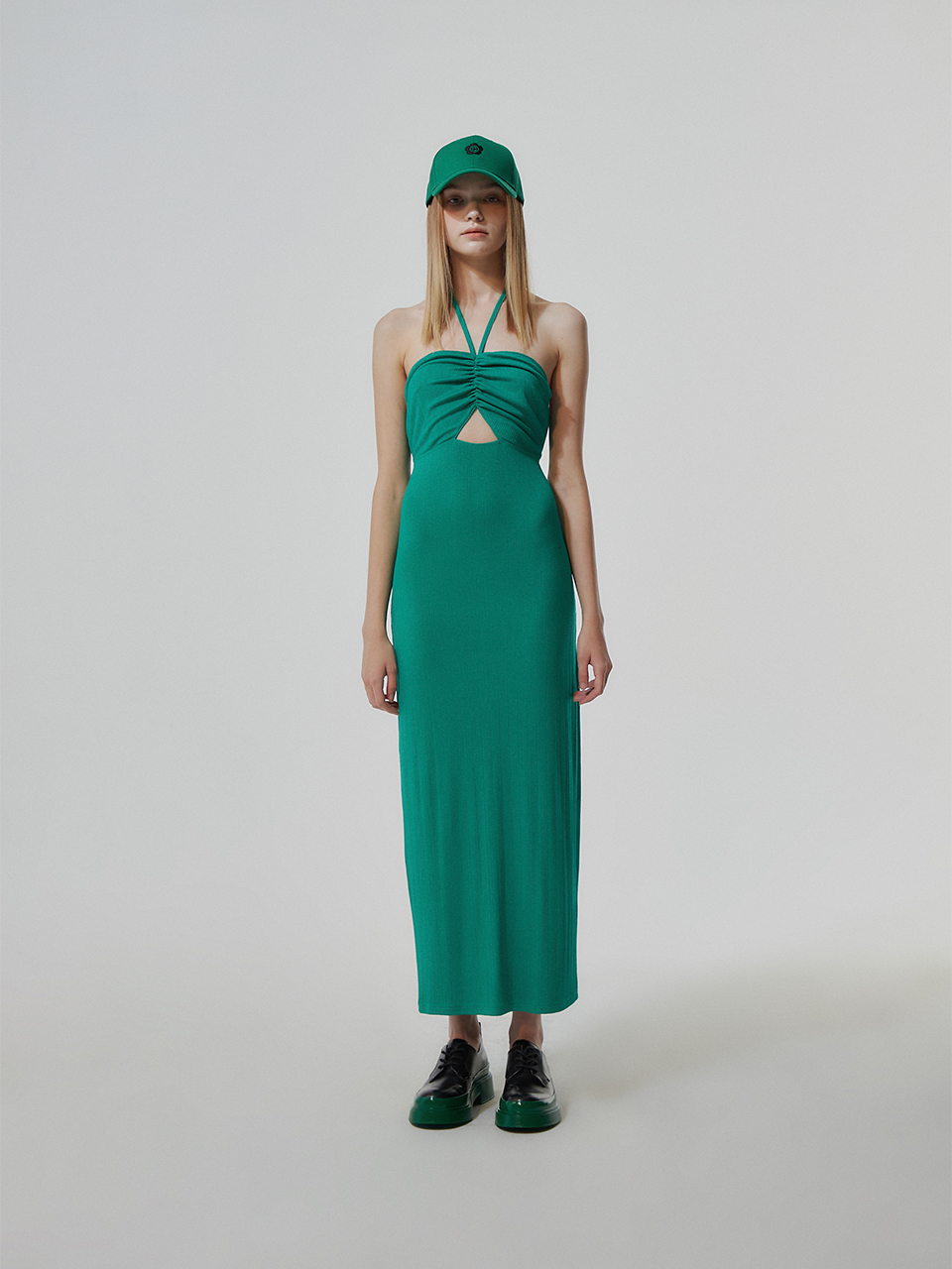 HALTER NECK SHIRRING DRESS_GREEN 복제