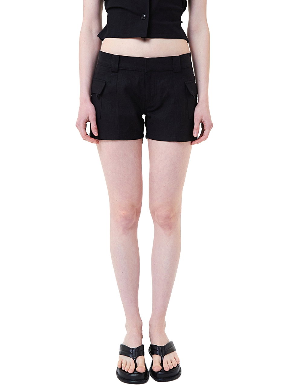 LOW WAIST SIDE POCKET SHORT PANTS_BLACK 복제