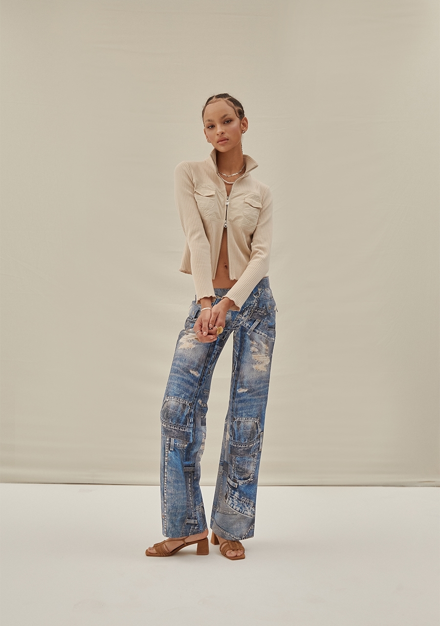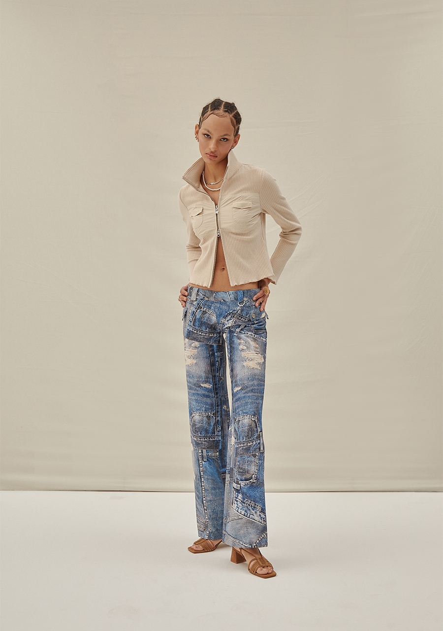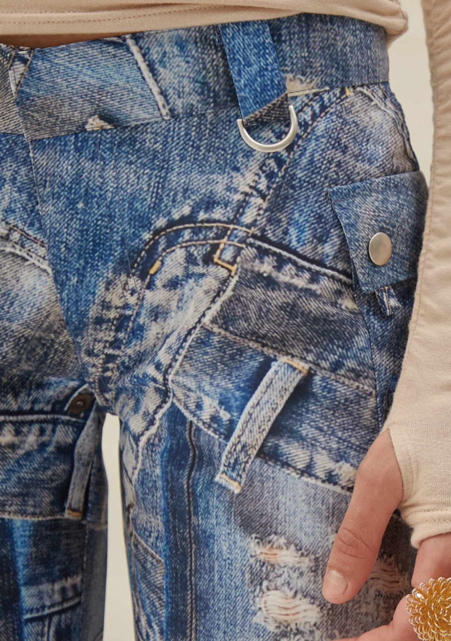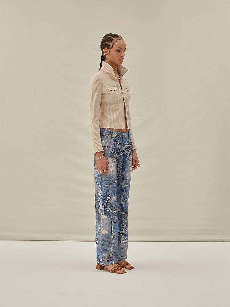 LOW WAIST MID WASHING PRINT JEANS 복제