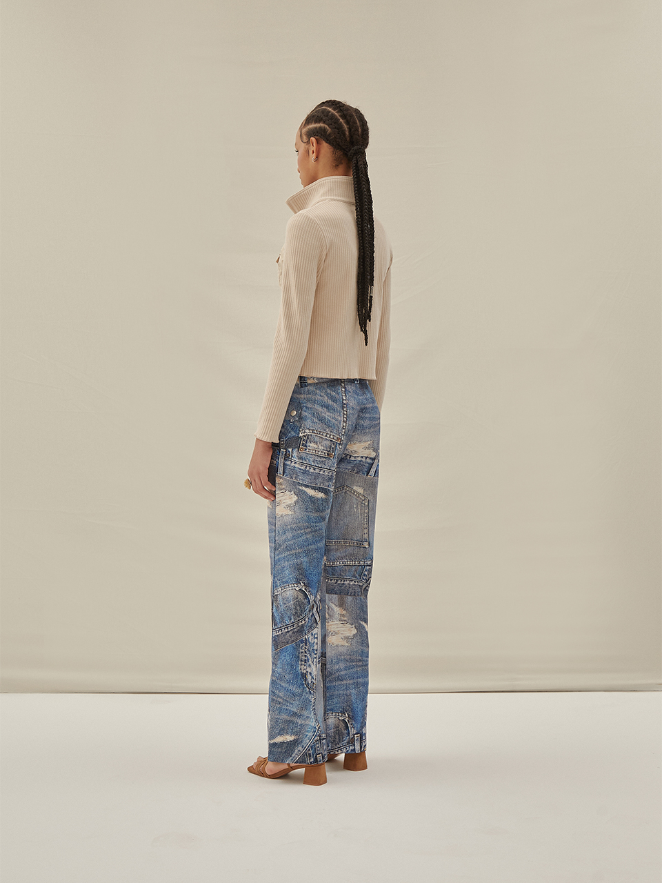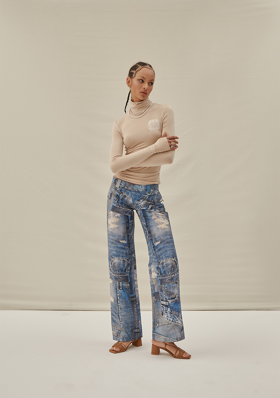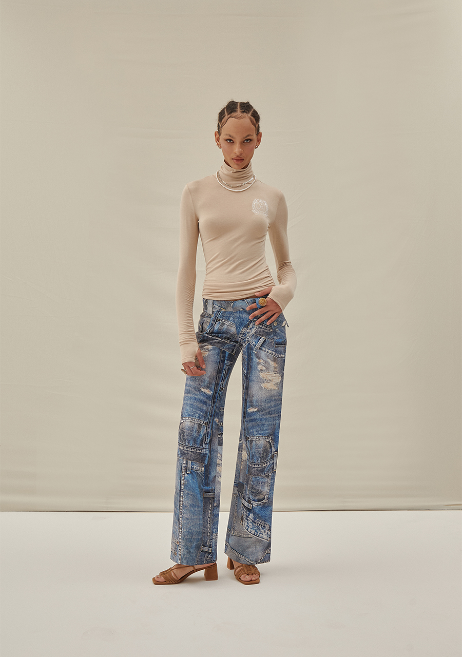 LOW WAIST MID WASHING PRINT JEANS 복제