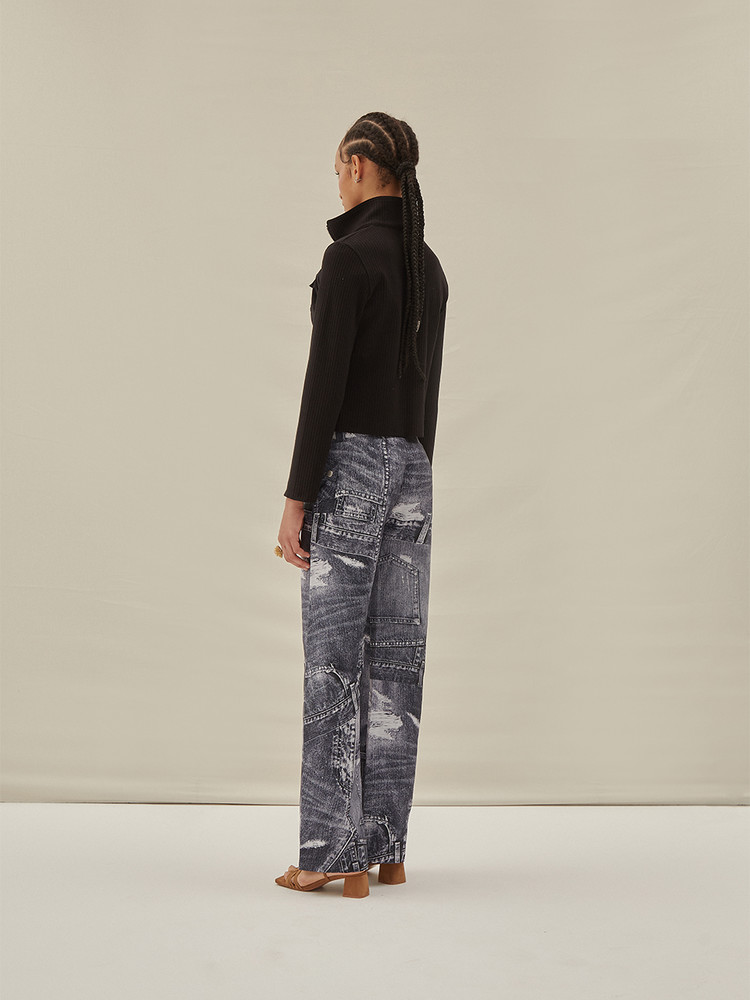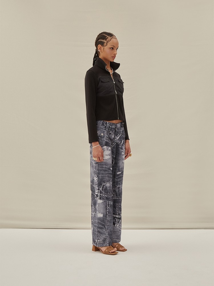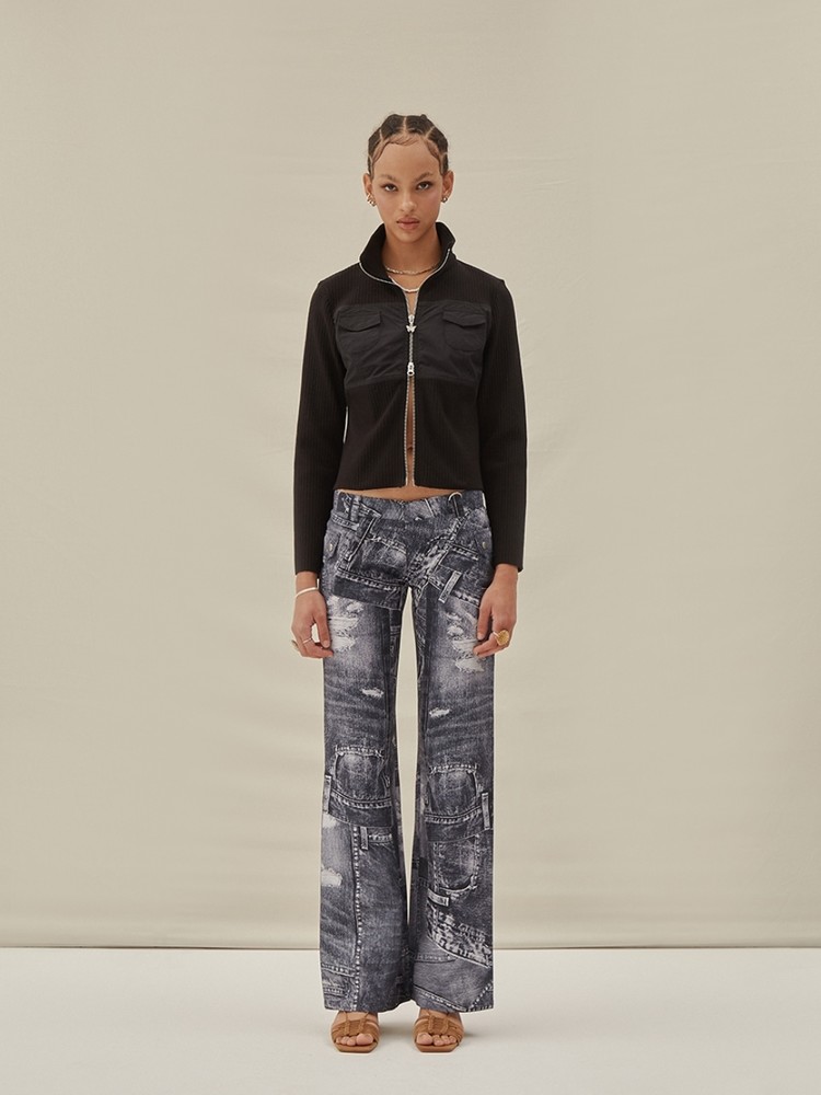LOW WAIST BLACK WASHING PRINT JEANS 복제