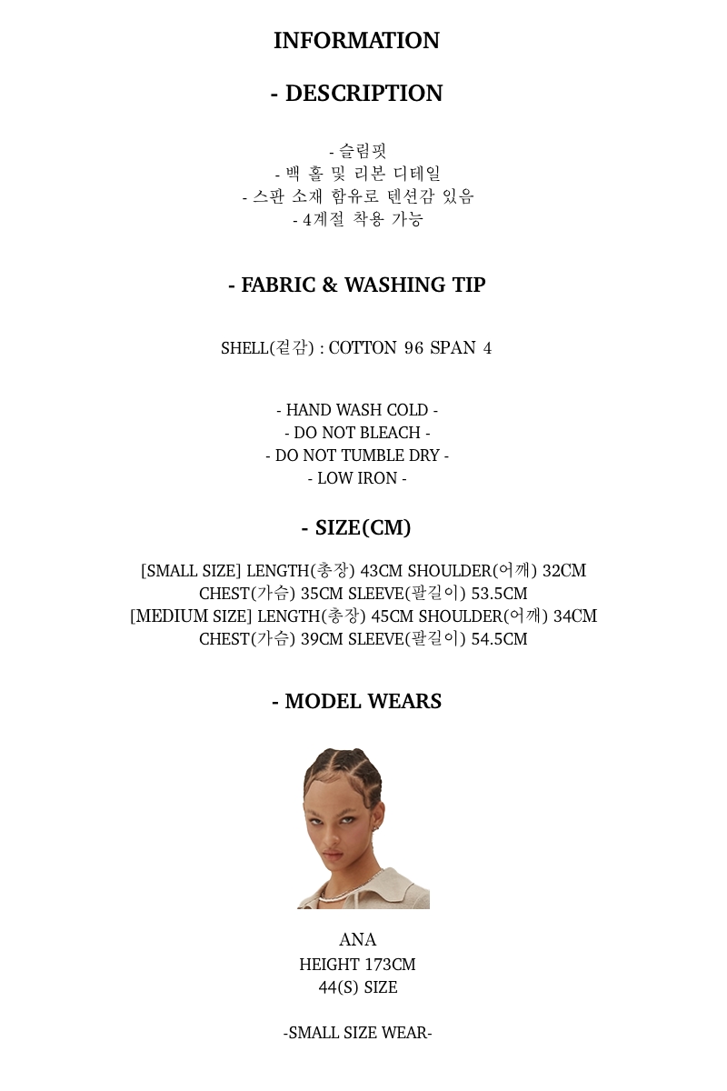 - MODEL : 173CM 44SIZE(S) WEARING SMALL SIZE