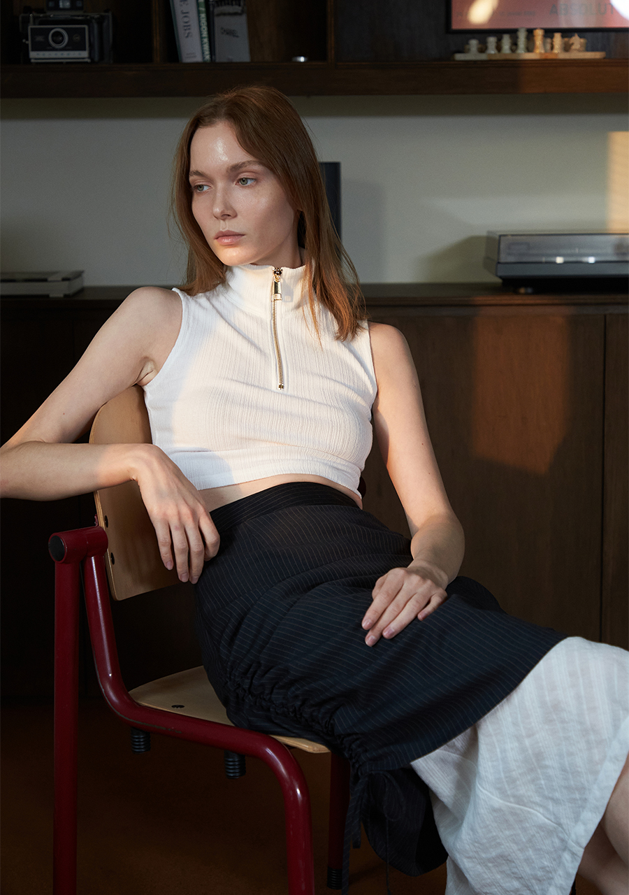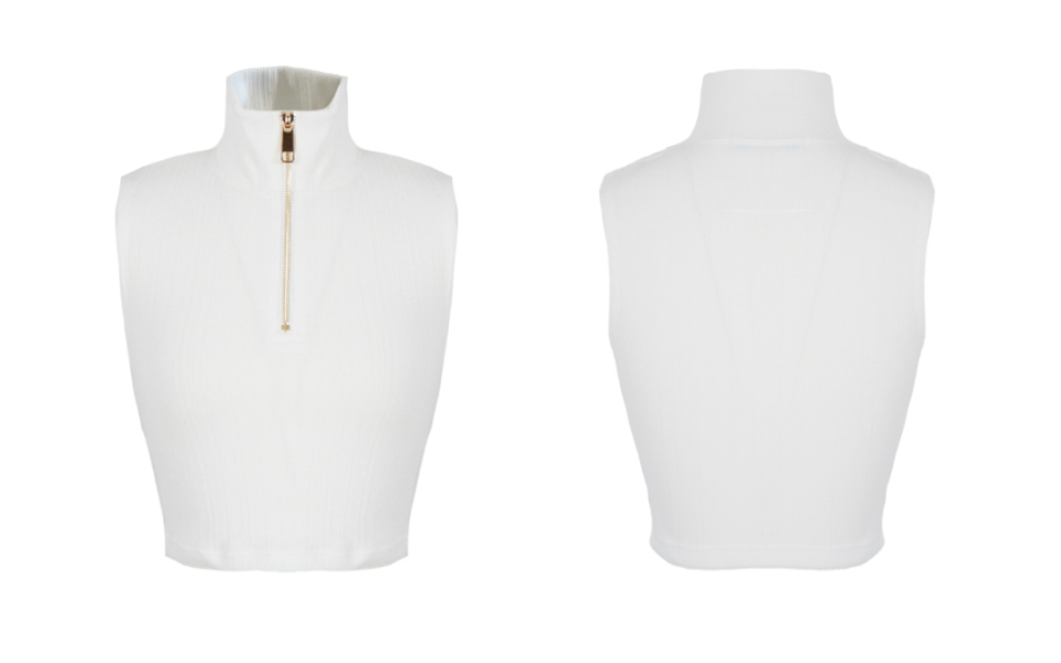 [리퍼브 상품] WHITE CROP KNIT ZIP UP SLEEVELESS
