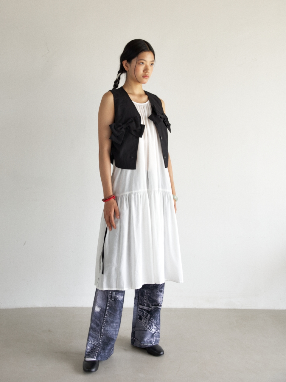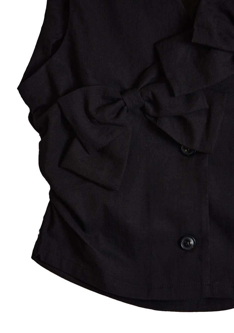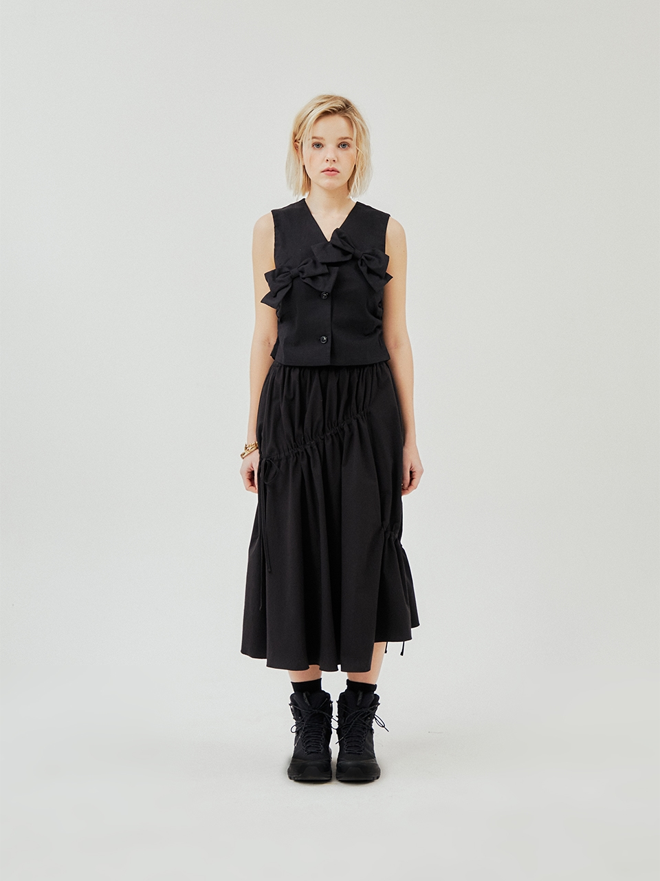 SIDE SHIRRING RIBBON VEST_BLACK 복제