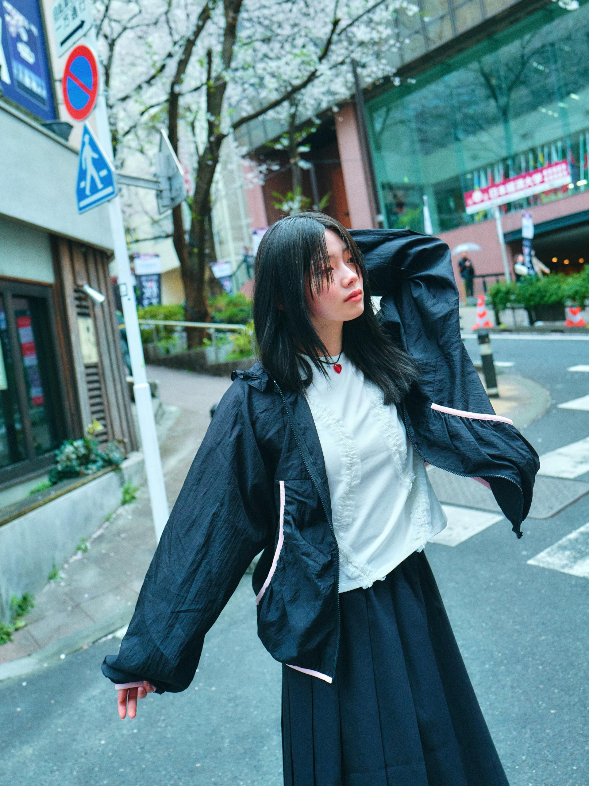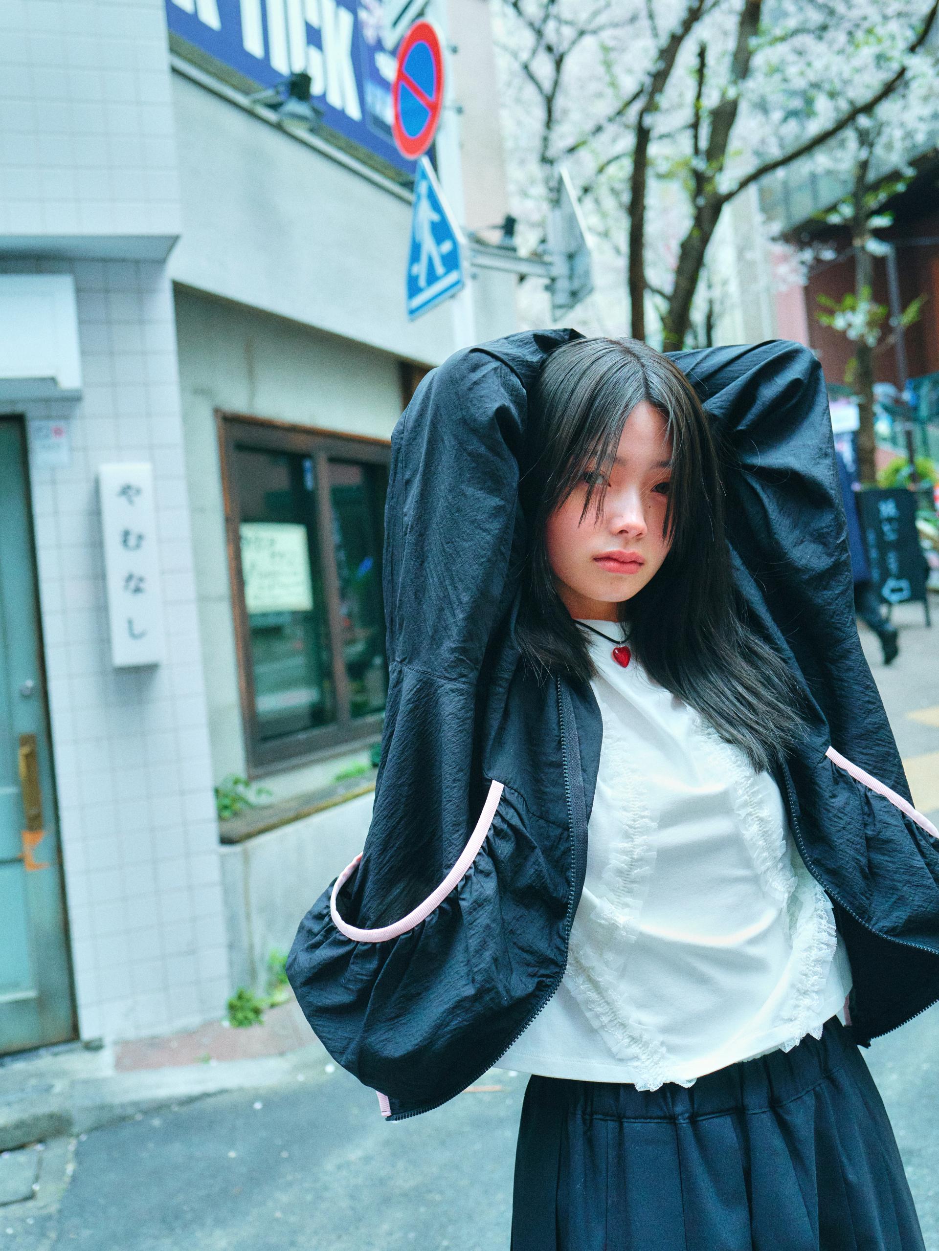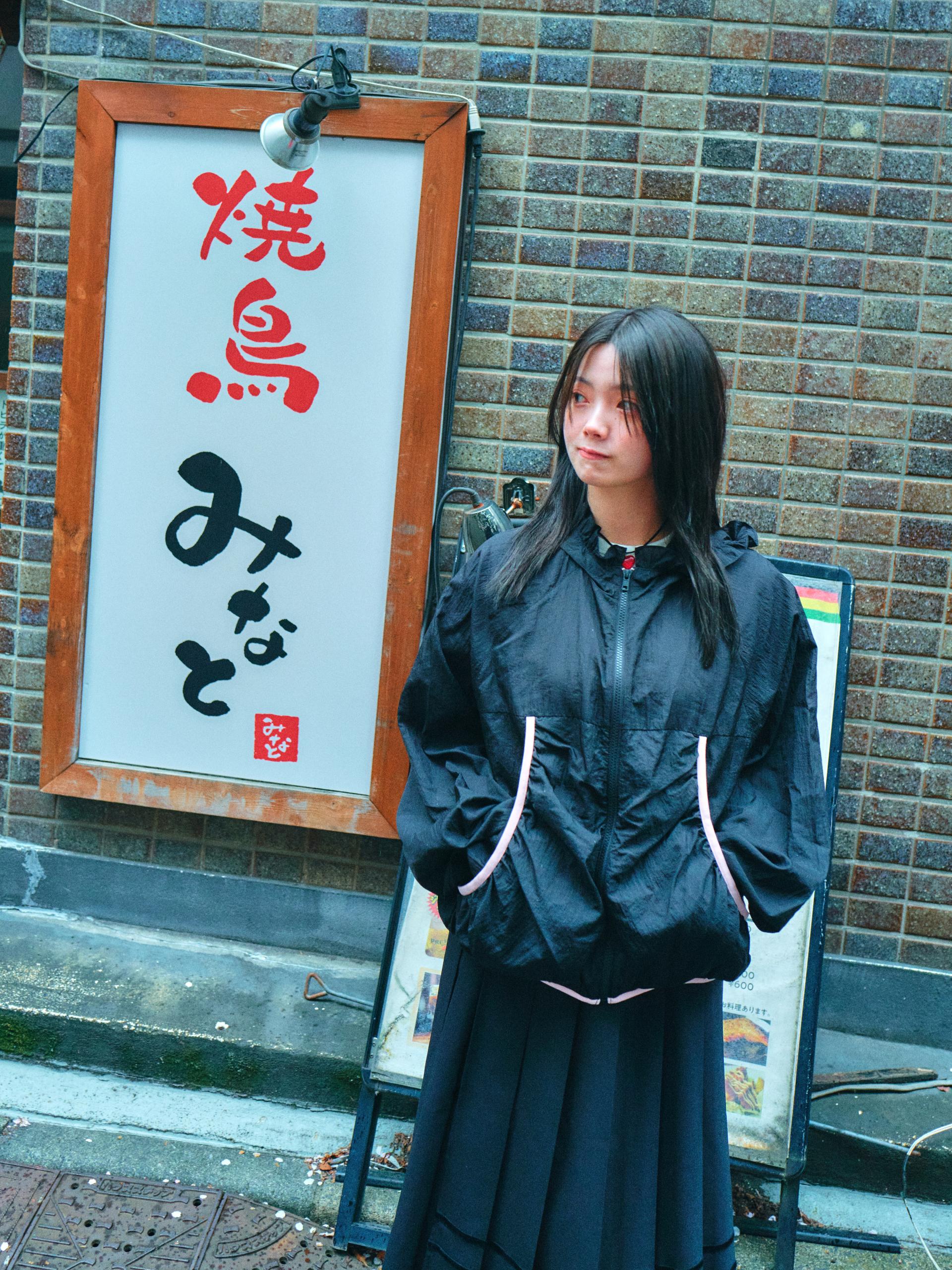 OVERSIZED FRILL HOODED WINDBREAKER_BLACK