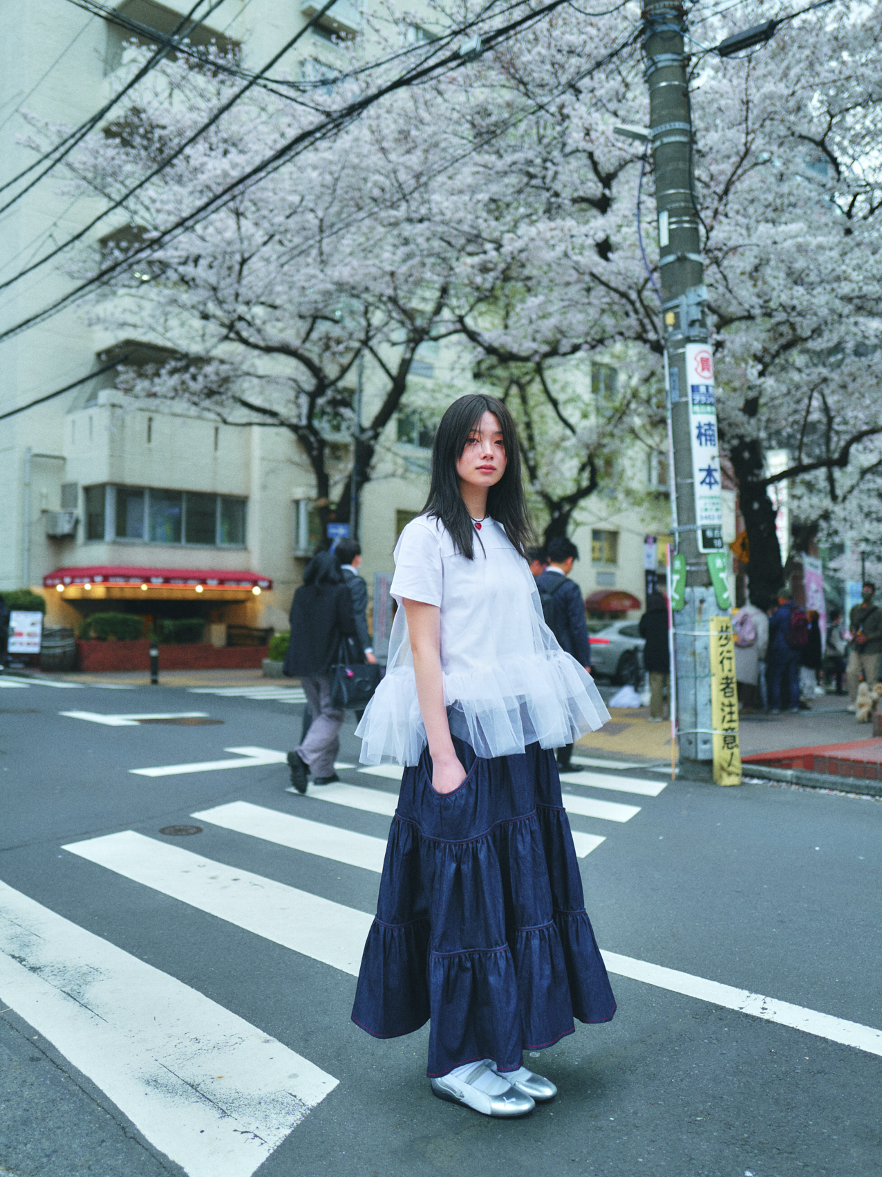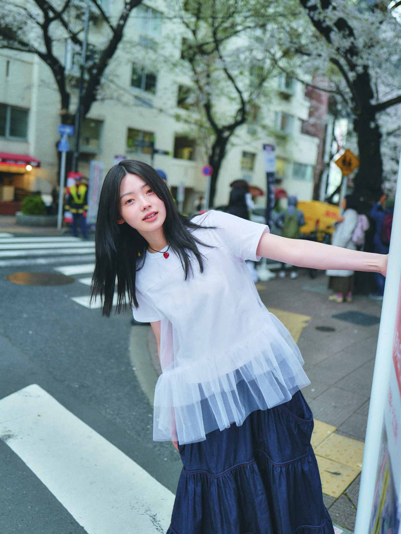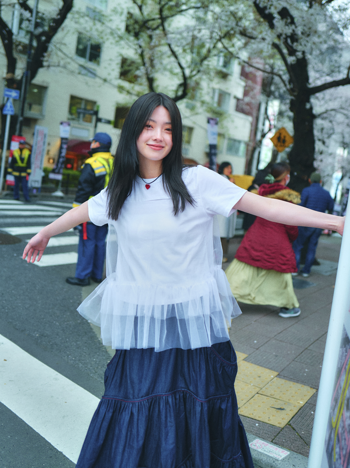 MESH LAYERD FRILL T-SHIRTS _ WHITE