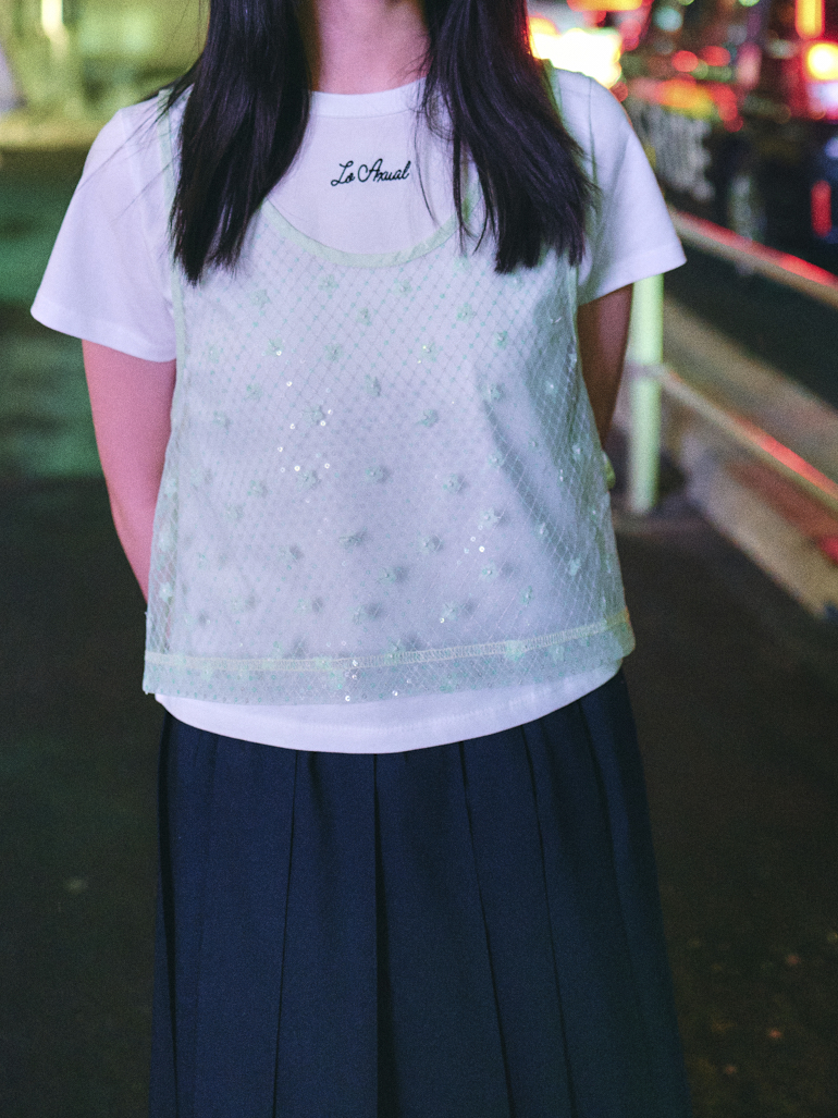 CHEST(가슴) 46CM SLEEVE(소매기장) 16CM HEM(밑단) 46CM