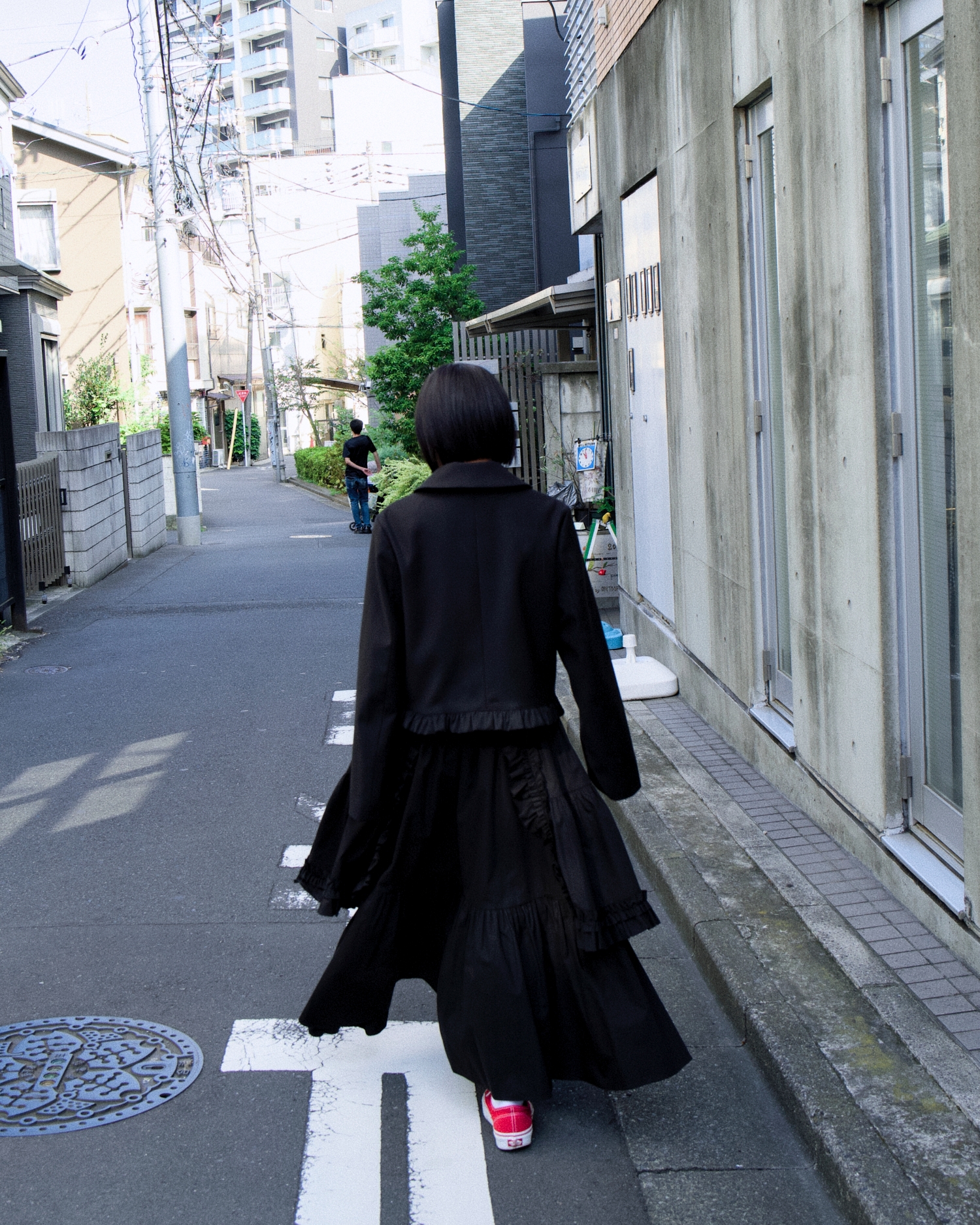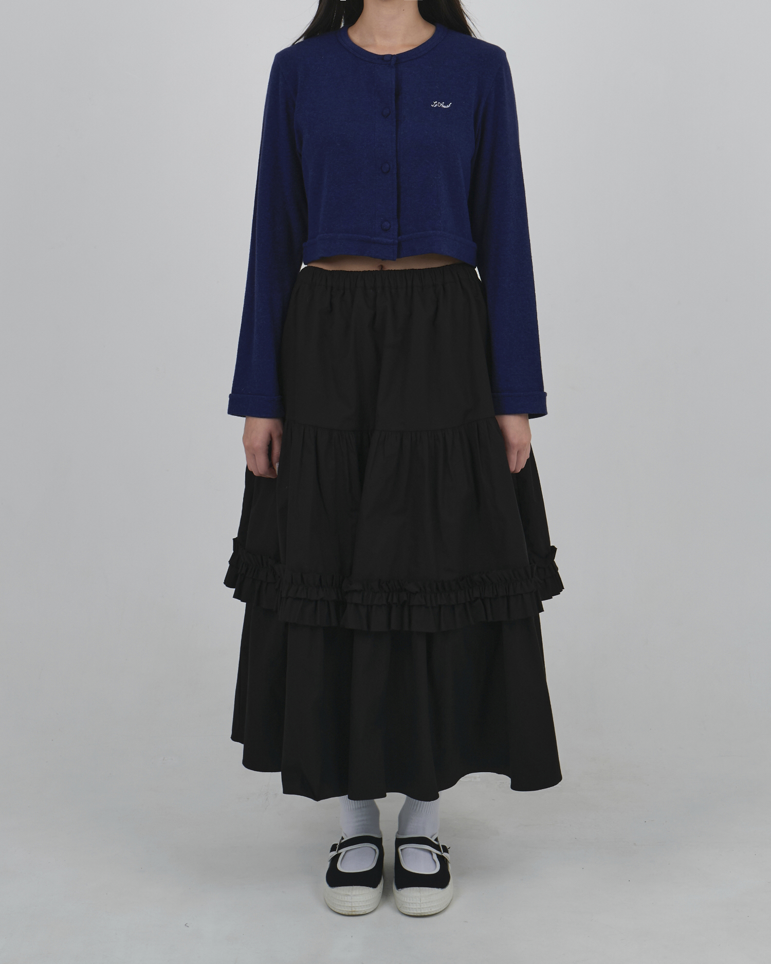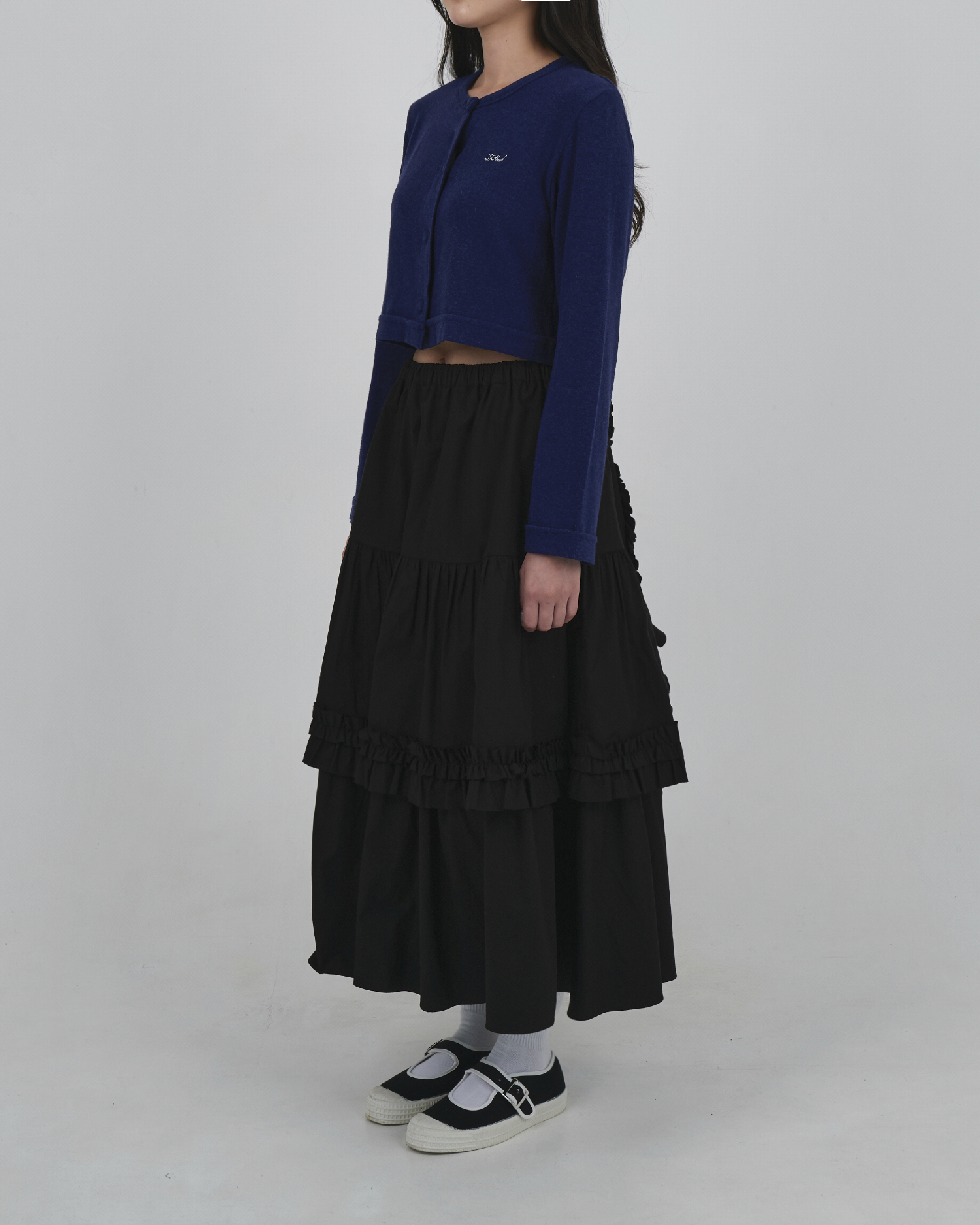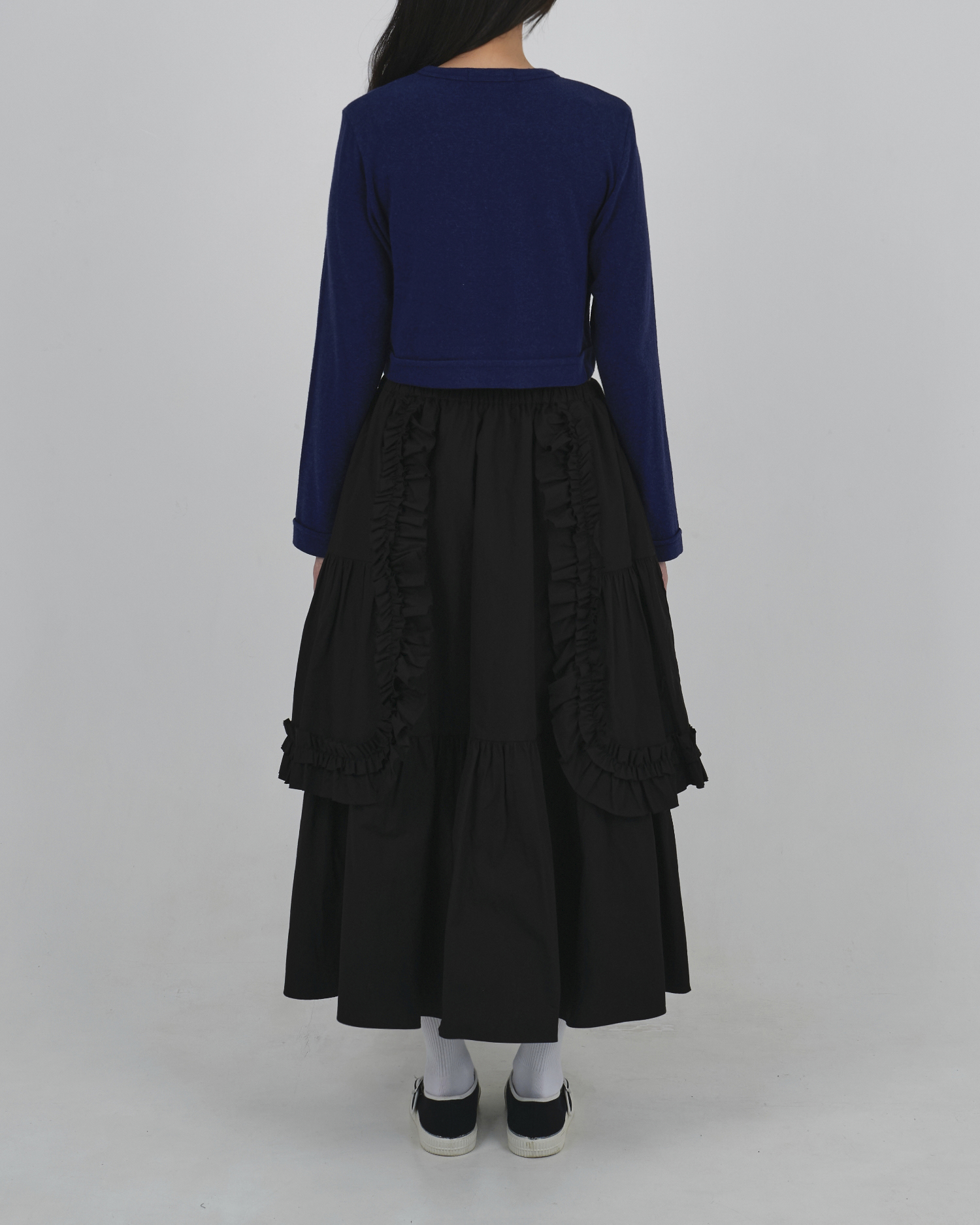 BACK TO FRONT APRON FLARE SKIRT_BLACK