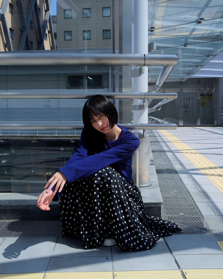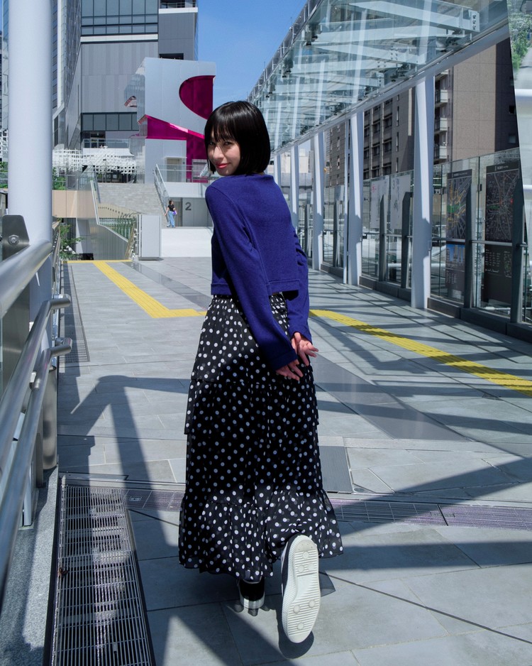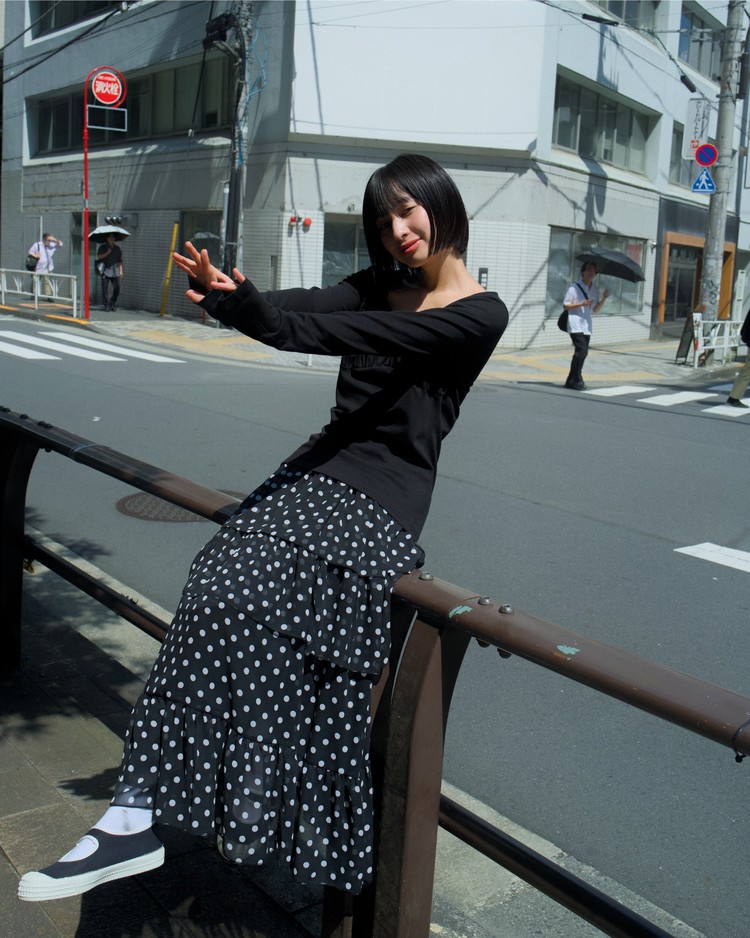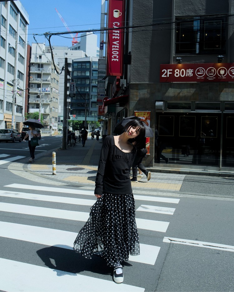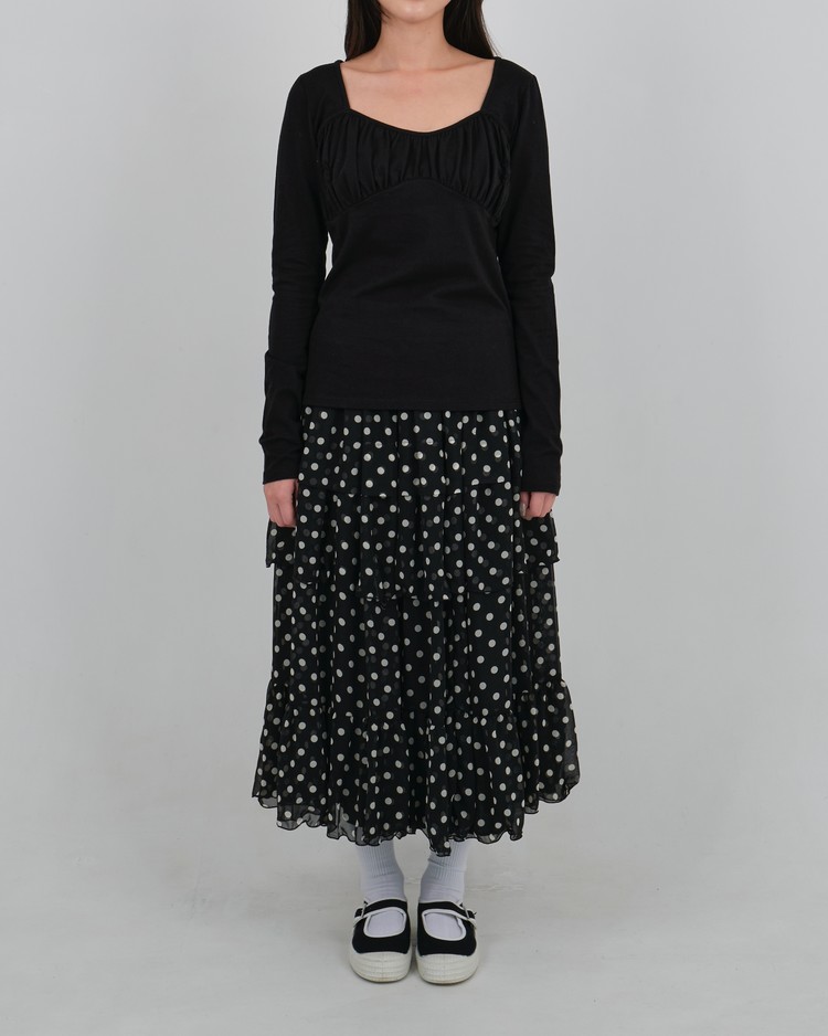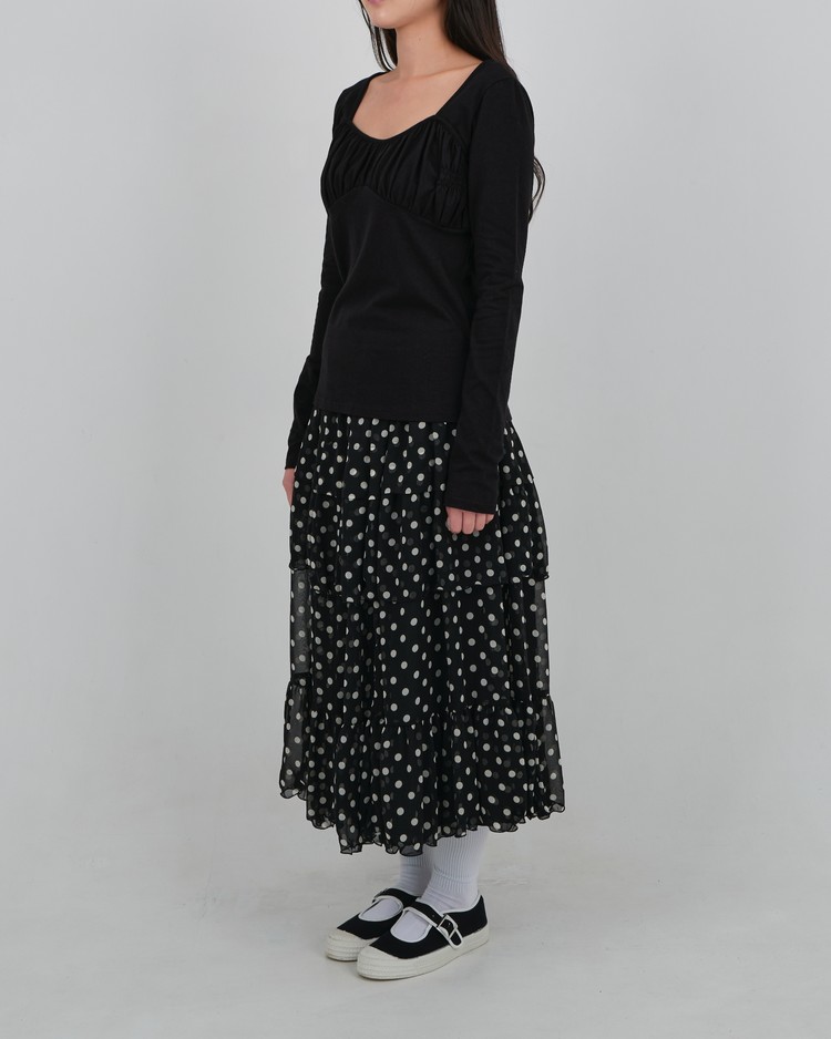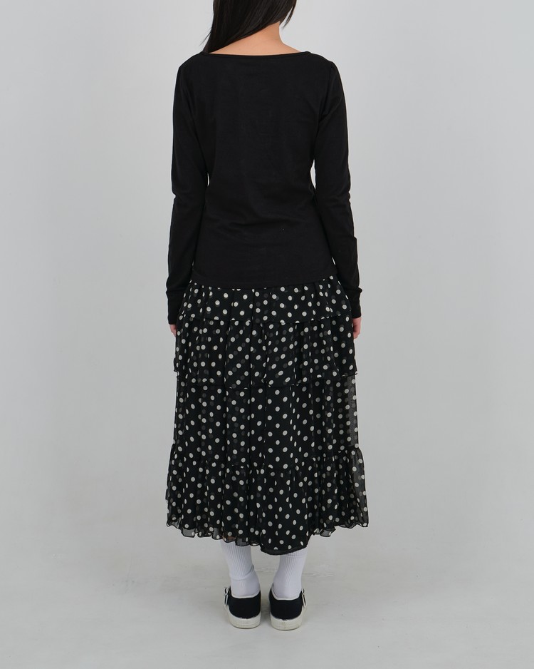 DOT CHIFFON FLARE SKIRT_BLACK 복제